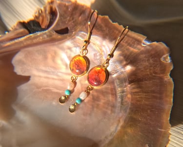 Our pieces are made using ethically, locally and hand sourced lionfish pectoral fins and tails, obtained from the regular lionfish hunts we carry around the coast of Byblos. They are then encased in high-quality resin, and paired with gold-plated stainless steel components, freshwater pearls, and natural stones.